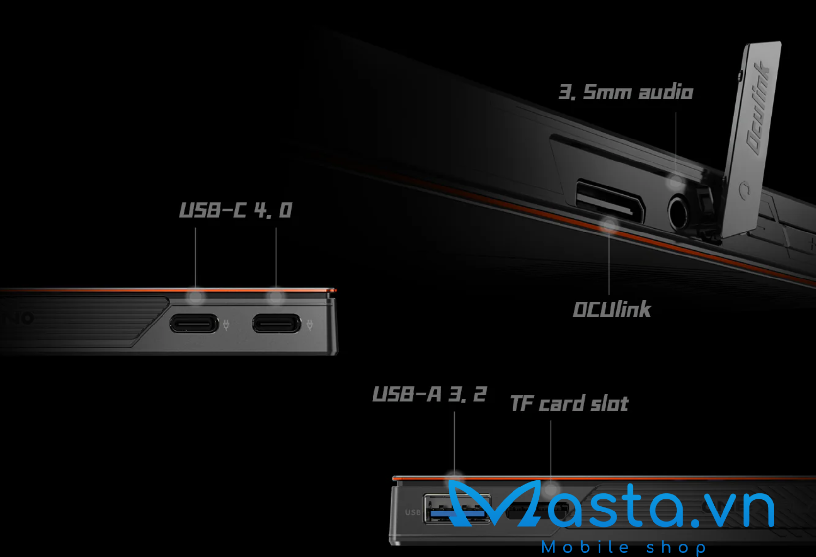 Về kết nối, thiết bị hỗ trợ Wi-Fi 6E và Bluetooth 5.2, cùng với nhiều cổng kết nối hữu ích như USB4, USB 3.0, jack tai nghe 3.5mm, và khe thẻ TF tốc độ 300MB/s. Đặc biệt, thiết bị còn hỗ trợ kết nối eGPU qua cổng OcuLink PCIe 4.0 x4, mở rộng khả năng xử lý đồ họa.