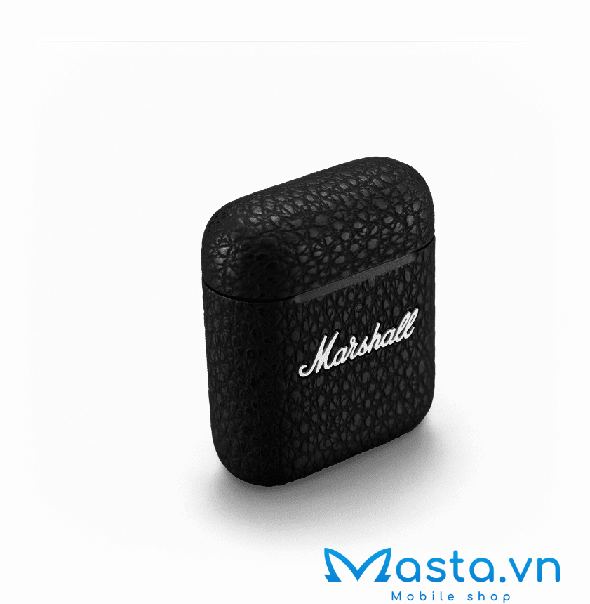 Tai nghe Bluetooth Marshall Minor III có kiểu dáng hiện đại và cá tính với sắc đen. Phần logo chữ M nổi bật in bằng chữ trắng nằm chính giữa tai nghe và in rõ chữ Marshall trên hộp sạc.